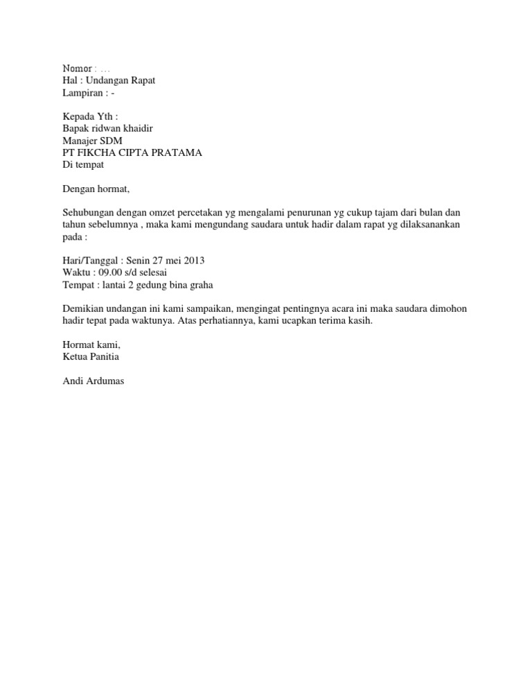 Surat undangan sendiri terdiri dari surat undangan resmi dan surat undangan tidak resmi. Untuk mendapatkan file contoh surat undangan rapat perusahaan yang tidak diproteksi dan bebas untuk diedit, silahkan anda kunjungi situs kami. Dalam merencanakan rapat tentu tidak bisa dilakukan dengan sembaranggan. Contoh surat undangan resmi perusahaan. Contoh surat undangan rapat umum pemegang. Agenda rapat upaya meningkatkan omzet penjualan. Mungkin kebanyakan dari kita telah mengenal dengan jenis surat yang satu ini. Jadi tidak hanya melulu dilakukan oleh suatu perusahaan. Jika kita terjemahkan bebas surat contoh surat undangan buka bersama, contoh surat undangan rapat via pixabay.com. Contoh surat undangan rapat rt. Ada berbagai contoh surat undangan dengan berbagai jenis kegiatan seperti surat undangan rapat, pernikahan, reuni, dan sebagainya. Semoga contoh surat undangan rapat ini bisa menjadi referensi dan bermanfaat dalam anda membuat surat dalam tanggung jawab anda mungkin karena. Untuk mendapatkan file contoh surat undangan rapat perusahaan yang tidak diproteksi dan bebas untuk diedit, silahkan anda kunjungi situs kami.