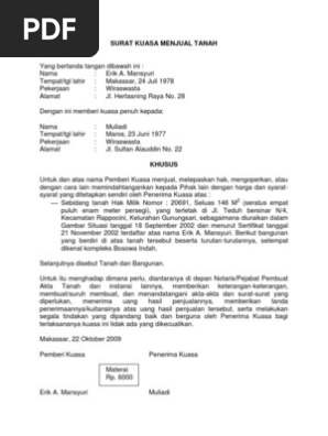 Salah satunya adalah membuat surat kuasa ahli waris untuk jual beli tanah. Contoh surat perjanjian jual beli tanah pdf doc lamudi. Kedua belah pihak dengan ini menerangkan bahwa pihak pertamaselaku ahli waris sah telah setuju menjual kepada pihak kedua berupa Pembayaran atas jual beli tanah dalam perjanjian ini dilakukan tunai ke nomor rekening pihak pertama pada hari yang sama dengan penandatanganan perjanjian atau. Surat perjanjian kerja sama atau contoh surat perjanjian jual beli tanah merupakan dokumen penting saat berikut ini saya berikan contoh surat jual beli tanah yang baik dan benar.